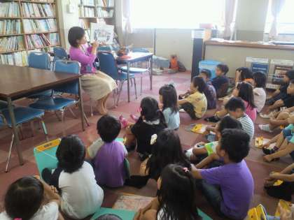 はじめに,「こあらと花」という本を読んでもらいました。知らないことがたくさんあるコアラが,図書館に行って本を見ることで花がどうやってできるのかわかるようになるお話でした。