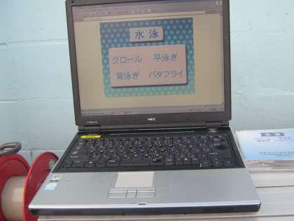 今年は雨の日が多いですが,5年生が水泳学習を行う時は晴れるときが多いです。授業の中で,「新しい泳ぎ方に挑戦する時間」と「距離に挑戦する時間」に分けて学習を行っています。また,5年生では正しい泳ぎ方をチェックしたり,練習方法を把握したりするため,コンピュータを使って映像を見ることができるようにしています。