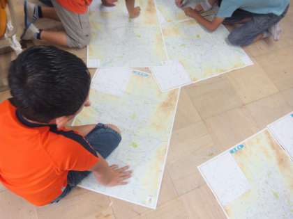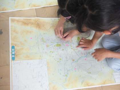 情報交換している小学校の位置を,地図を使って調べました。
