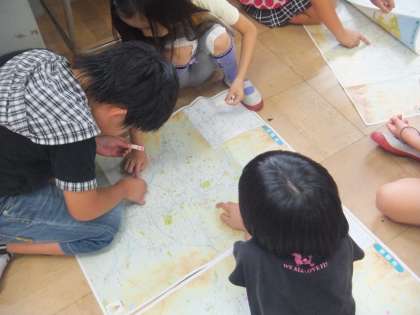 小学校の位置にシールを貼ると,それぞれの位置関係がわかって,近くにどんなものがあるのか注目しやすかったようです。