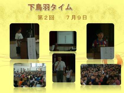 7月9日,本年度第2回の下鳥羽タイムが行われました。今日の発表は,2年生と5年生です。