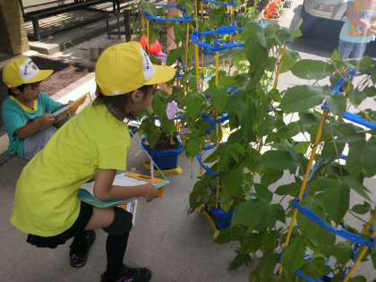 夏休み前の最後の朝顔の観察をしました。きれいな朝顔の花やもうすぐさきそうなつぼみの観察をしました。