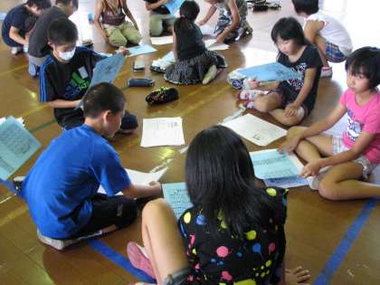 今日は山の家での活動の要となるしおりを作りました。昨年のみさきの家とは違い,日程が長いこともあって,しおりのページ数もとても多く,子どもたちもその多さに驚いていました。
