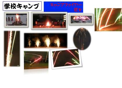 学校キャンプ 1日目 キャンプファイヤー・花火
