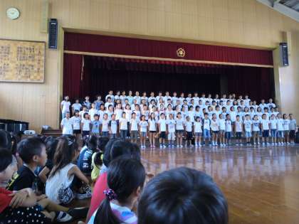 1時間目に朝会があり,6年生の歌の発表と夏休みに向けての話をしてもらいました。