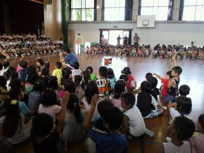 校長先生の話は,「アリとキリギリス」のお話にちなんだものでした。夏休みは,宿題などにこつこつ取り組むアリにもなってほしいし,この夏休みにしかできない経験(遊びなど)をたくさんしてキリギリスにもなってほしいという内容でした。