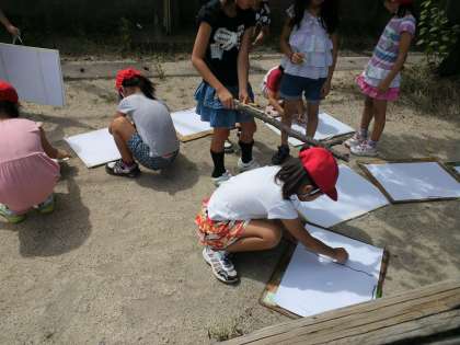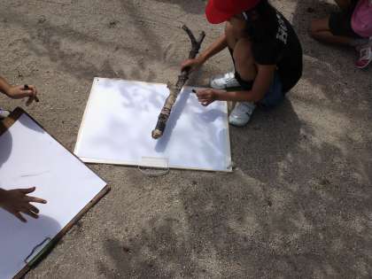 図工の学習でかげうつしをしました。普段は、あまりじっくり見ることのないかげの形のおもしろさをみつけながらの授業でした。これまでよりも大きな画用紙をがばんにおいて、いろんなかげをみつけて描きました。