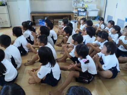 今日は、身体計測がありました。身体計測の前の保健指導では「手をきれいにあらおう」ということで、手の汚れのひどいところを予想して、洗う時に気をつけて洗うようにと指導してもらいました。先生と一緒に手洗いのシュミレーションもしました。食中毒や病気を予防するためにもとても大切ですので、普段から気をつけて欲しいです。
