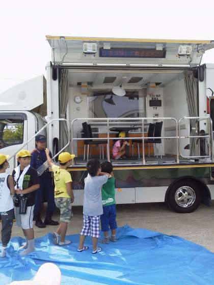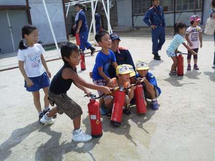 子どもたちは,消火器や地震の揺れ,けむりなどを体験しました。