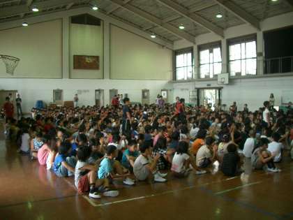 9月10日(月)1時間目に9月の朝会がありました。体育館はまだまだ蒸し暑かったのですが,全校が揃うまで大変静かに落ち着いてならんで待つことができました。
