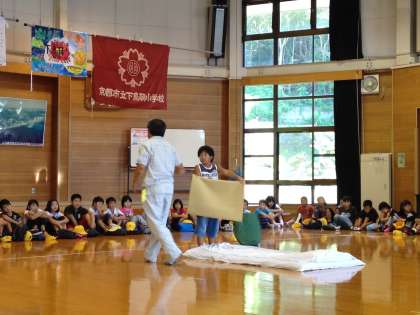 オリエンテーションで、職員の方からシーツ・毛布の敷き方やたたみ方、シュラフの使い方などを教えていただきました。