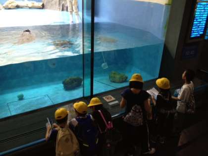 鳥羽水族館では班毎に、相談しながら見るものを決め、見学しています。