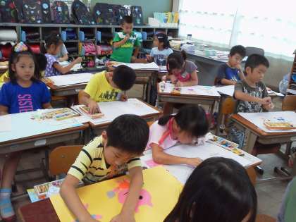 みんな想像を膨らましながら、クレパスやコンテ、絵の具などをつかってかいています。