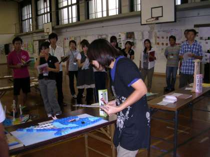 力作がそろった夏休み作品展。今年も教員は作品を見て,理科・図工・社会の研修をしました。どのような指導をするのか,どのような観点で優れた作品を見分けるのかなど各教科の専門の教員の研修を受けました。