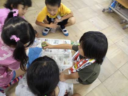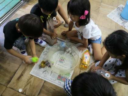 直接水を触り,協力して数えながら学習することができました。