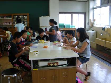 家庭科でミシンに挑戦しています。