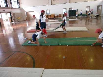 準備や片付けを協力してなるべく早く済ますことで,長い活動時間を確保することができています。また,同じ場で練習する仲間同士が客観的にみてアドバイスをすることで,より「考えて」体を動かすことができています。