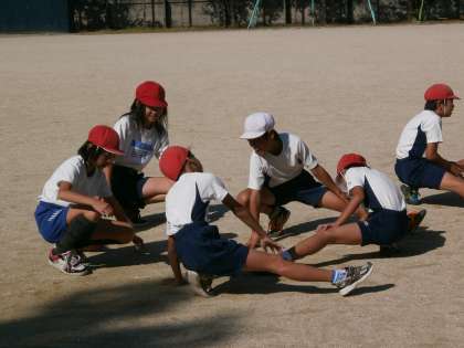 5年の体育の学習では,体育館でのマット運動と並行して,走り幅跳びの学習も進めています。