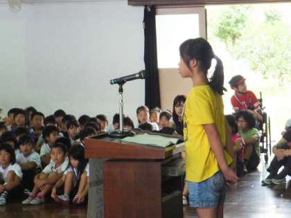 3年生は「がんばった自由研究」という題で発表しました。2年生までは図工などの自由研究が多かったのですが,3年生からは社会や理科の自由研究となります。その中で身近な鴨川に焦点を当て,調べていく中で気づいたことなどを発表しました。