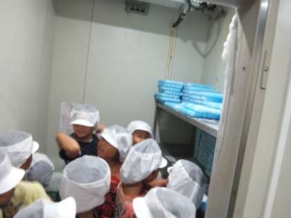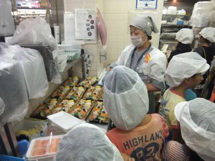 「新鮮さ」に関わる内容を調べるグループは,奥の調理場や冷凍庫などに入らせてもらい,調理してすぐに店頭に出すことを知りました。