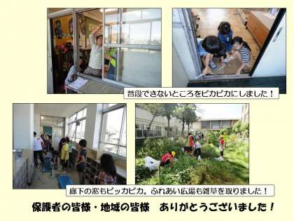 暑い中ご協力していただいた地域の皆様・保護者の皆様・PTA本部皆様,本当にありがとうございました。学校もそして子ども達の心もピカピカになりました。