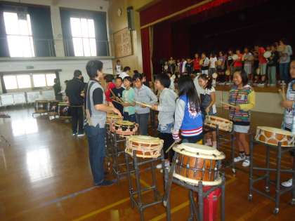 今日の5・6校時に,和太鼓体験がありました。