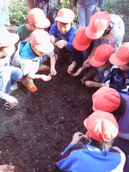 生活の「そだてよう あきのやさい」の学習で、野菜を植えます。