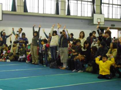 3B体操の子どもたちに体ほぐしの体操を教えてもらい,