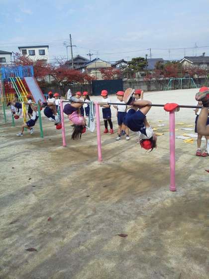地球まわりや前回りおり、そして逆上がりなどに挑戦しています。