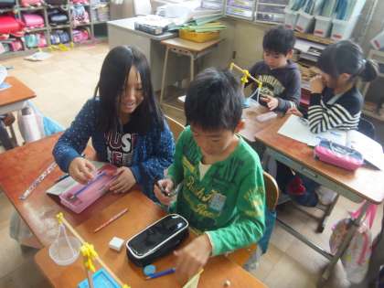 身近な文具などについて,重さ比べをしました。