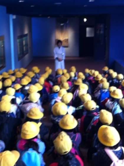 まず、はじめにプラネタリウムを見て、星の学習を行いました。星座の見つけ方や、星座に関わるお話を教えていただきました。