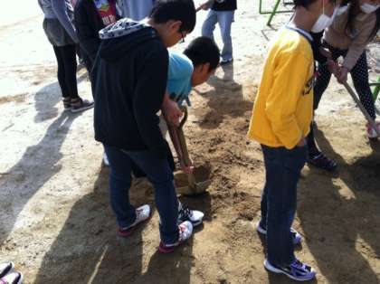 スコップを使って,穴を掘る体験をしました。