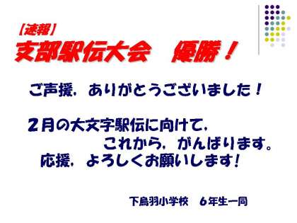 皆様のご声援により,支部駅伝大会 見事優勝することができました。