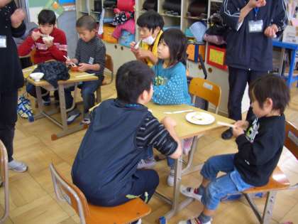 その後,伏見南浜小学校のPTAの方々の餅つきに参加させていただきました。一人ずつつかせてもらい,お餅にあんこを包んで黄粉をまぶして食べました。つきたてのお餅はとってもおいしかったです。