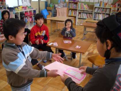 1月生まれと2月生まれのお友だちのお誕生会をしました。みんなで歌を歌ったり,ゲームをしたりして楽しみました。出し物の読み聞かせもあり,大盛り上がりでした。お祝いのプレゼントを渡すと,嬉しそうに笑顔で受け取ってくれました。