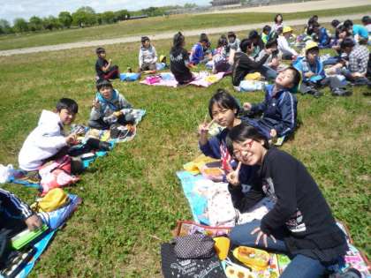 次に,「平城京跡」を見学しました。朱雀門から第一次大極殿までを実際に見渡すことができ,その長さや幅の広さを感じることができました。風が強かったですが,近くの広場でおいしいお弁当も食べました。