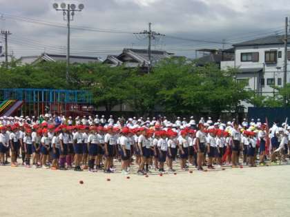 1年生も,先生の笛の合図に合わせて,しっかりした足取りで行進していました。