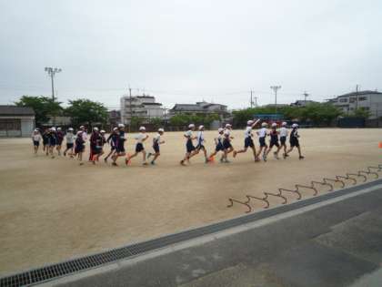 放課後に部活動に励んでいる子どもたち。みんな自分の目標に向かって一生懸命です。今日は,陸上部・バスケットボール部・すもう部が練習をしていました。心身ともにたくましく成長しています。