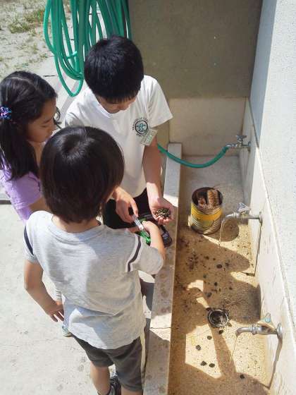 班でメダカのすみかを考え,作っていきました。