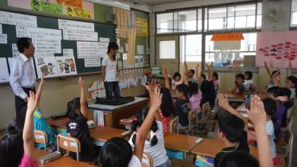 各クラスで「非行防止教室」がありました。実際に警察の方に来ていただいて,やっていいことと悪いことを理解し,正しい行動ができるようにお話をしていただきました。