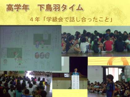 6月17日(月)は,高学年の下鳥羽タイムでした。今年度は,高学年と低学年に分かれて発表を聞き合います。
