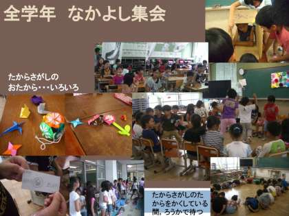 高学年がいろいろ工夫して,グループでオリジナルの遊びを考えたり,宝さがしのお宝に凝ったりしていました。1時間,楽しく交流できました。