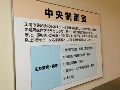 工場見学で最初に見せていただいたのは中央制御室という部屋です。ここはクリーンセンター内にあるすべての機械をコントロールする施設だそうです。