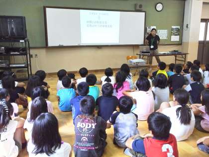 8月にいく山の家での長期宿泊学習に向けて学年集会をしました。