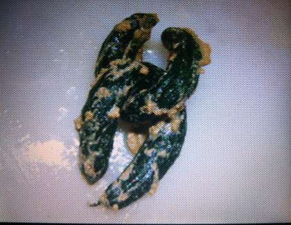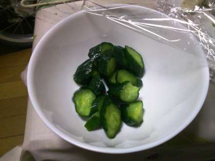 早速家に持ってかえりました。昨日の夕食で,キュウリのヌカ漬けが出てきました。ヌカにつかっている所を,奥さんが写真に取っておいてくれました。Mちゃんが曲がったキュウリを鎖のようにつなげてくれたので,そのままの形で持って帰り,そのままの形でぬかにつけたそうです。