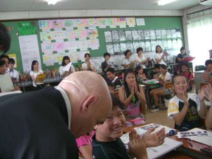 ゲストティーチャーは,文武両道で「道」を極めようとしておられる“裏千家教授 ランディ・チャネルさん。ランディ・チャネルさんの日本の伝統文化に対する思いから,今日まで続いている茶道などの伝統文化がどのようなものかを考えることができました。