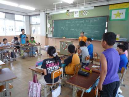 5・6年生は,英語の学習でALT(assistant language teacher)の先生に授業をしていただくことがあります。子どもたちは,外国の先生と実際に会話をすることで意欲も増し,楽しく活動をしています。アンガス先生が来られる日が楽しみです。