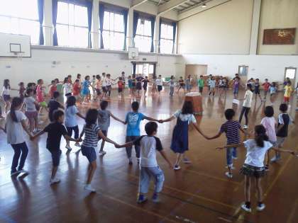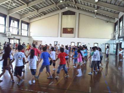 輪になって踊る練習をしました。