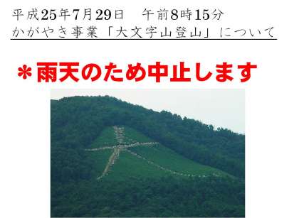 平成25年7月29日(月)に予定されていた「大文字山登山」は,雨天のため中止となりました。