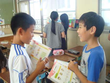 みんながとても楽しみにしている英語の時間です。初めは,恥ずかしがっていた様子でしたが,今では英語を話すことをとても楽しんでいます。今日は,友だちの様子を聞きに回ったり,じゃんけんゲームをしたりしました。